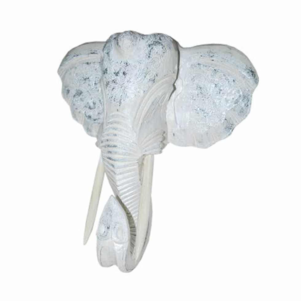 Cabeza decorativa con forma de elefante realizada a mano con madera pintada de varios colores a elegir.