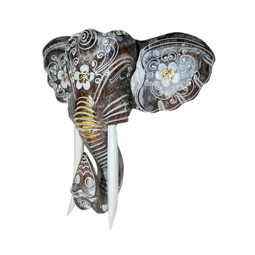 Cabeza decorativa con forma de elefante realizada a mano con madera pintada de varios colores a elegir.