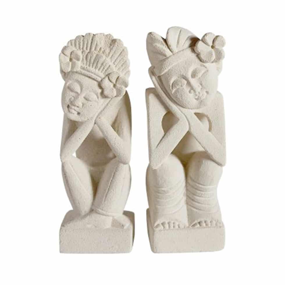 Pareja de balinesas realizadas a mano en figuras de piedra blanca.